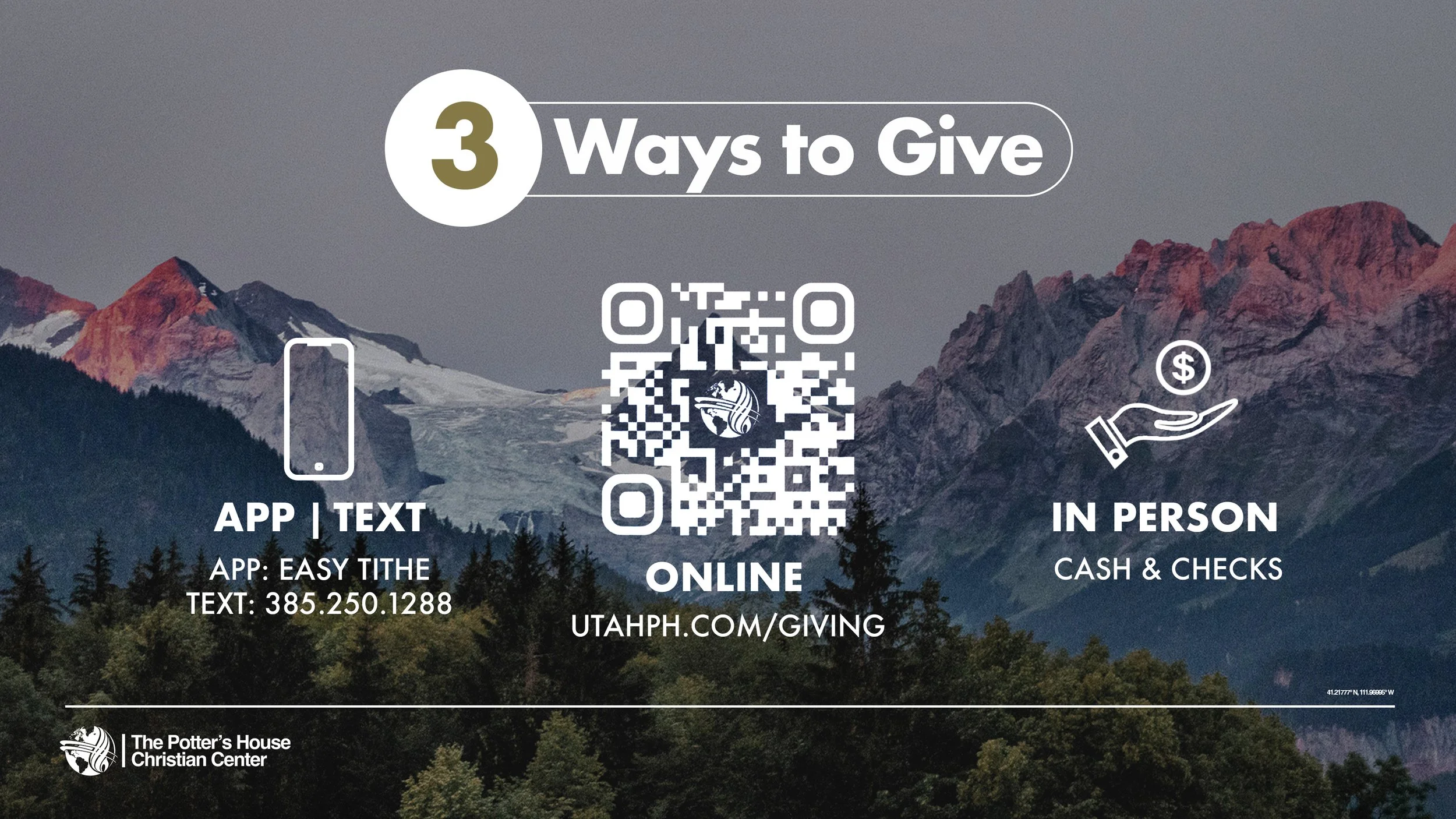 For text giving, text “GIVE” to (385) 250-1288 to get started. Follow the setup prompts if it is your first time giving via text.